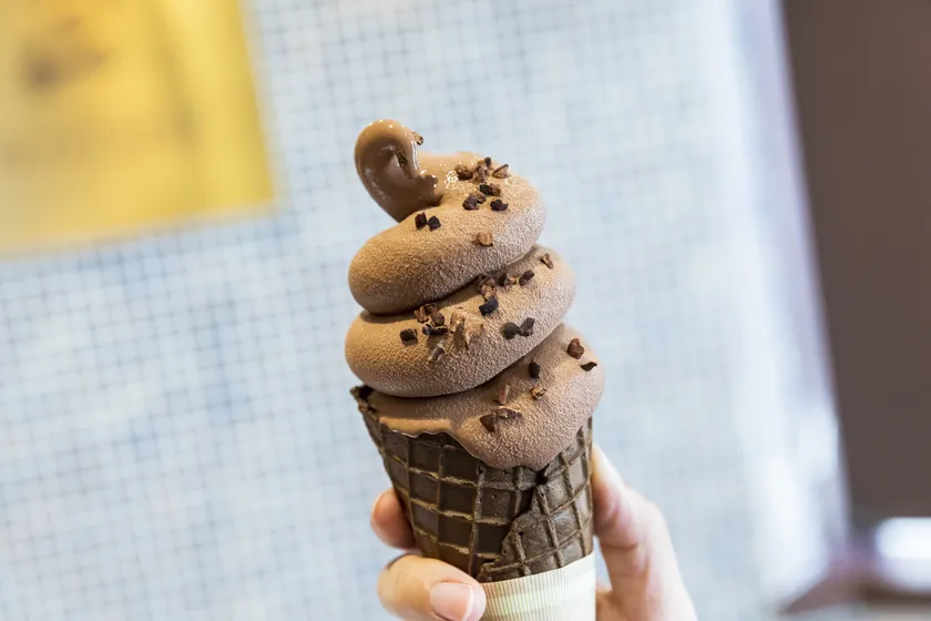チョコレート専門店特製の独自配合による、濃厚でいて後味さっぱりのチョコレートソフトクリームです。暑い日にはもちろん、冬にもおすすめしたい商品です。