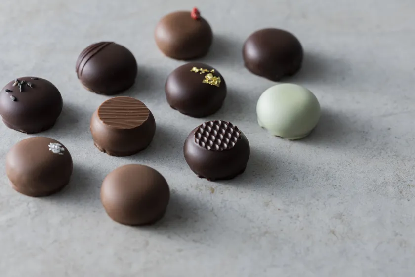 ころんとした球形で、他店ではなかなか見ることができないフォルムが特徴の名物商品「ボンボンショコラ」は、ビター、ミルク、キャラメルといった定番のフレーバーだけでなく、抹茶、あんこ、黒ごま、ゆずなど、今までにない「和」素材との掛け合わせにも挑戦しました。