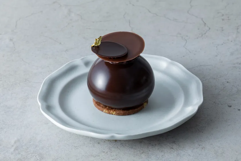 濃厚なチョコレートにバニラを組み合わせて仕上げた、チョコレートのムースケーキ。互いの良さを引き立たせる繊細な技術が、可愛らしさと高級感を両立させる丸いフォルムにも表れています。