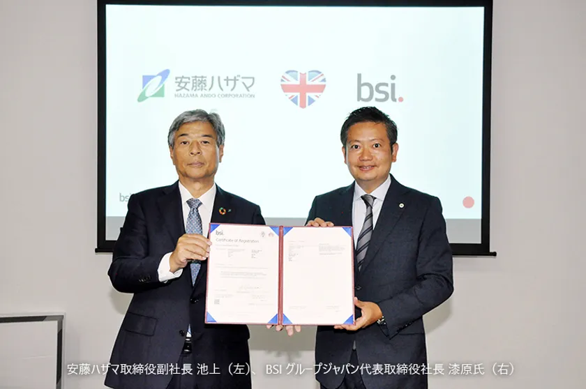 安藤ハザマ(本社:東京都港区、社長:福富 正人)は、7月22日にBSIグループジャパン(英国規格協会)からISO 19650-1およびISO 19650-2(注1)に基づく「設計と建設のためのBIM BSI Verification(検証)」の認証を取得しました。