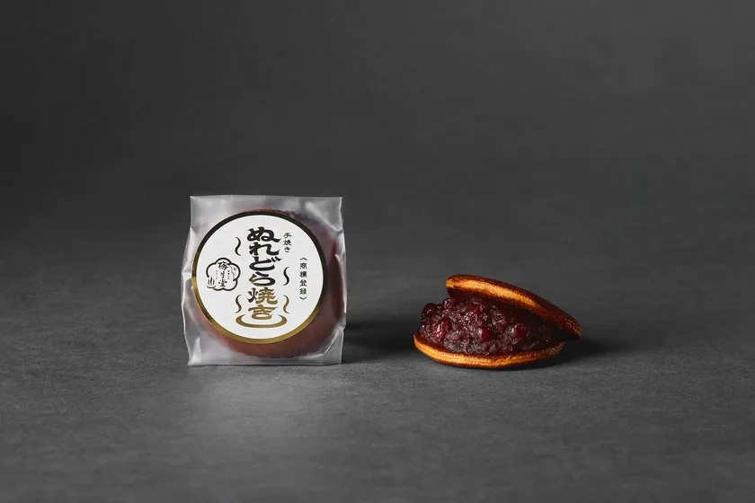 国産蜂蜜だけを贅沢に使用した手焼きの「かわ」と、北海道産大納言小豆のみを煮たてて作る「自家製どら餡」が日ごとになじみ、よりしっとりさを増していきます。梅月堂のぬれどら焼きのフラグシップ商品、まずはこちらからお召し上がりください。