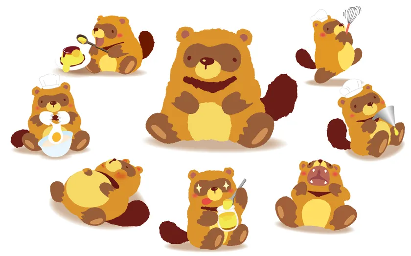 「町田由来の自然派プリン」のアンバサダーであるタヌキたち