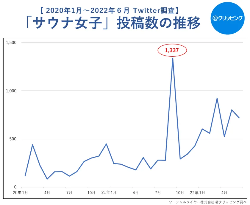 ソーシャルワイヤー株式会社(本社:東京都港区、代表取締役社長:庄子 素史、以下 ソーシャルワイヤー)は、記事クリッピングサービス「@クリッピング(アットクリッピング)」のTwitter投稿調査サービスを活用し、サウナに関する人気調査、新業態に関する調査を行いましたので報告します。