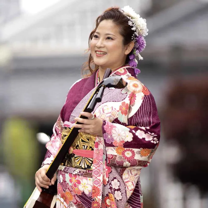 熊本県出身、大分県在住。民謡、三味線、津軽三味線。チャリティーコンサートでは熊本県阿蘇市と大分県日田市に寄付し、民謡を広げるために日々奮闘中。各地で演奏活動を積極的に行う傍ら、民謡教室や三味線教室も開催しています。