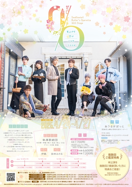 執事歌劇団第16回公演『0/O(ゼロイチ) ~見上げる空は ハルカうららか~』が2025年4月24日 (木) 〜 2025年4月27日 (日)にあうるすぽっと(東京都豊島区東池袋4-5-2)にて上演されます。
