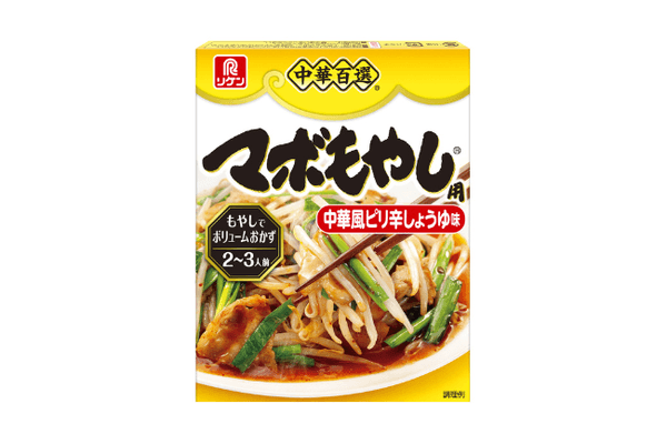 『マボもやし』は、醤油をベースに、豆板醤、香味野菜の風味を合わせた、2~3人前の麻婆もやしの素。本品を使うだけで、もやしがご飯のすすむおかずに変身します。