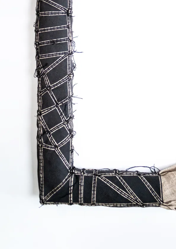 土井 直也は、新・入れ物作家と自らを位置づけ、常に物の見え方、捉え方を疑うところから制作をスタートします。桑沢デザイン研究所卒業後、企業パタンナーを経て渡英し留学先での語学に対するコンプレックスから、「モノ」の曖昧さと信憑性について研究し始めました。自身の作品やコンセプトの根幹にあるのは、「中身の無さ」。本展覧会の作品は、「フレームという空洞(無)を有するオブジェを解体したらどうなるか。」から始まります。