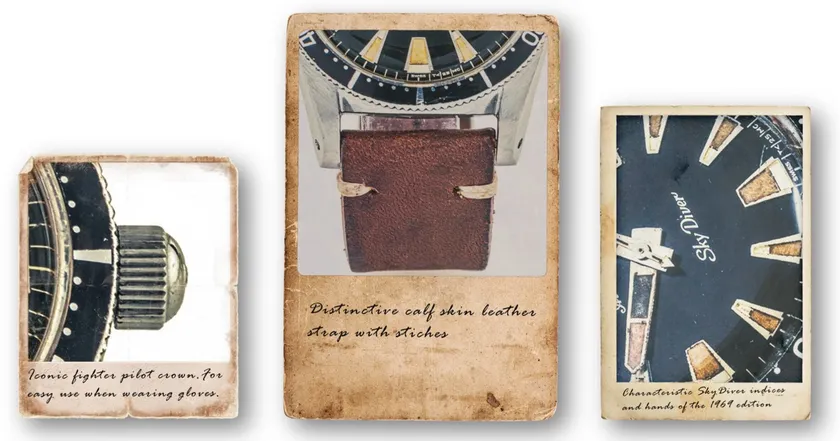 おおよそ半世紀の時を経て進化したスカイダイバー。世界限定600本となる今回の新作は、大振りのリューズ、ドーム型風防、個性的なインデックスを用いた視認性の高いデザインを忠実に再現すると同時に、最新の技術や素材を使ってアップデートしました。また、インターチェンジャブル仕様のストラップと専用レザーケースが付属します。