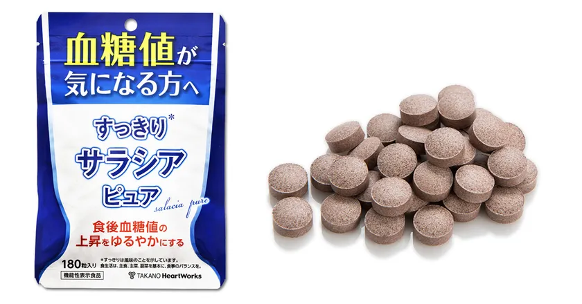サラシアは、インド等の亜熱帯地域原産の植物で、サラシア由来のサラシノールは、“糖の吸収を抑える”作用等があり、食後血糖値の上昇を穏やかにすることが報告されています。