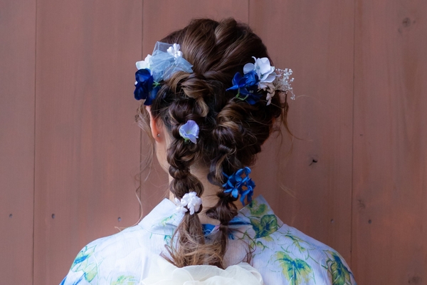 人気のスタイルカタログ(8パターン)からお好きなものをお選び頂けます。着物やイメージに合わせて当日選んでも大丈夫です。