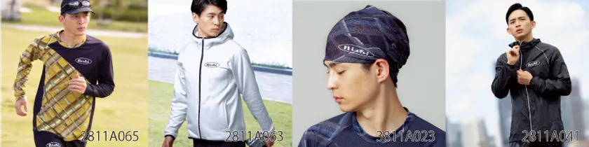 その他にも、サングラスのズレを防止するためのラバーストッパーを搭載したランニングキャップ(2811A037)や、ウエストポーチ型に収納して身に付けられるランニングジャケット(2811A041)などを展開しています。