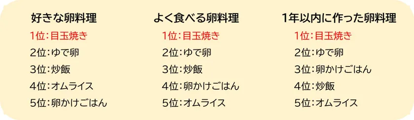 <好きな卵料理は、「目玉焼き」が3年連続で不動の1位>