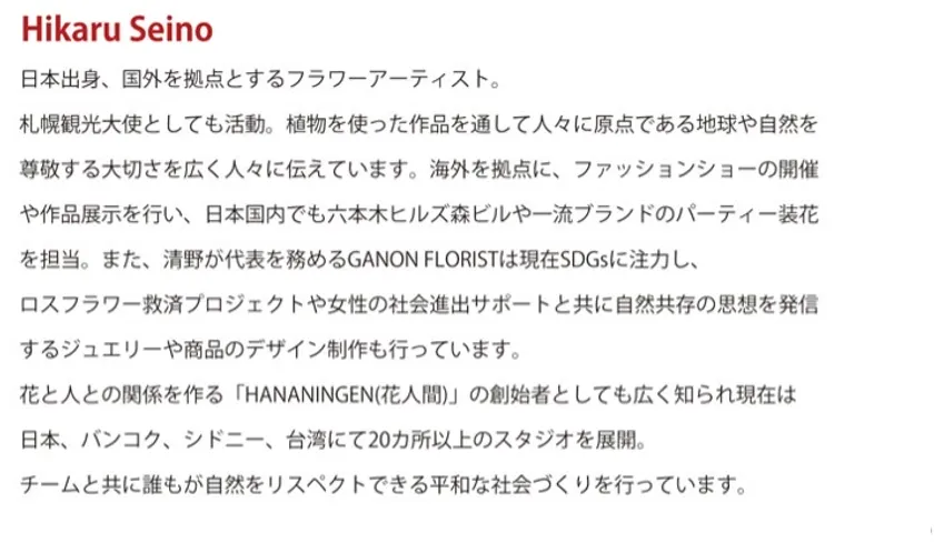 フラワーアーティスト:Hikaru Seino