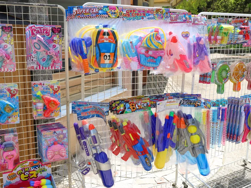 じゃぶじゃぶ広場営業中には、水鉄砲やTシャツ、水遊び用のおむつなどの販売も行っています。