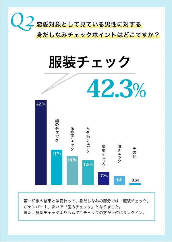 また、髪型チェックよりもムダ毛チェックの方が上位にランクインしていることが興味深いです。