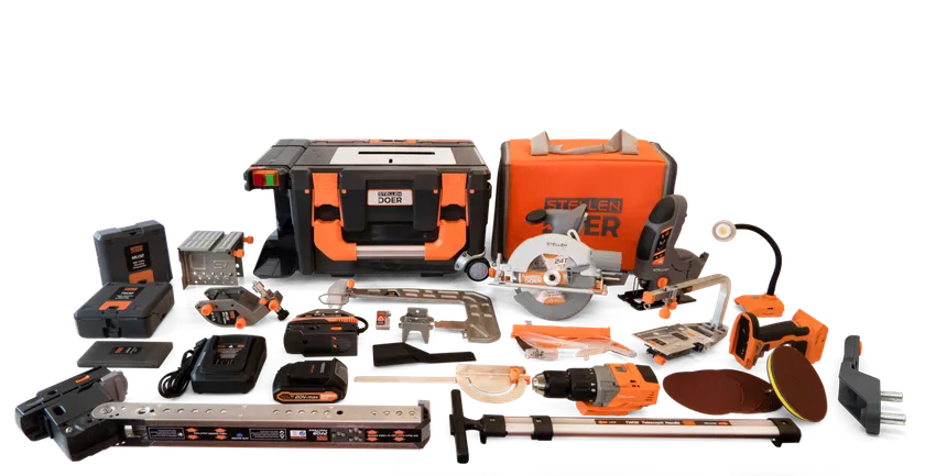 “DOER”の電動工具セットは、収納と作業台を兼ねたワークケースが搭載されていて、多くの機能を搭載し、持ち運びが簡単で、革新的な電動工具セットです。クラウドファンディングのIndiegogoとKickstarterで合計約5億円を達成した実績もございます。