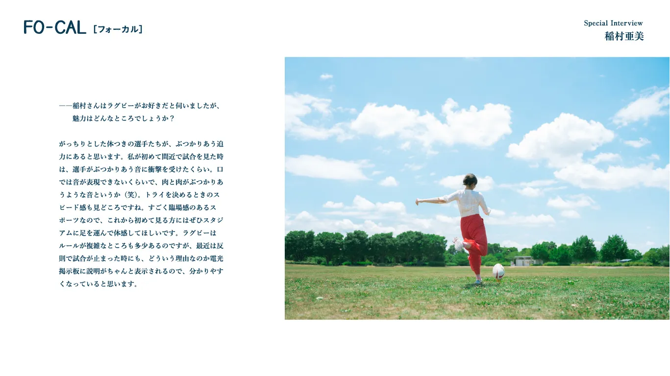 ラグビータウンとして盛り上がるまち、埼玉県熊谷市を訪れた稲村亜美さん。ラグビーが大好きだという稲村さんは、ラグビーのモニュメントがある駅前からのスタートにテンションがあがりっぱなし。一方で、レトロなまち並みの縁結び通りなど散策が楽しいスポットや熊谷の文化に触れられる場所も数多くあります。「いい意味で予想を裏切られた」とグルメも堪能できたようです。稲村さん衝撃の熊谷銘菓はなんだったのかは、ぜひ、本誌を確認してください。