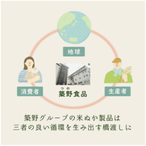 国内生産の米ぬかを活用することで、地球、生産者、消費者の三者の良い循環の実現を目指しております。