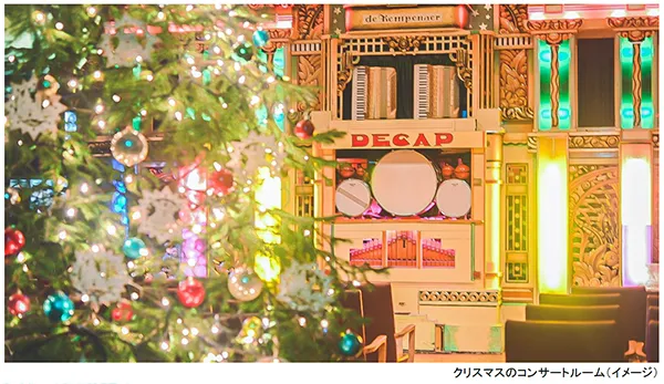 12月24日(土)、25日(日)は夜のクリスマスイベントとして「森の音クリスマス・ナイト・コンサート」を開催します。当施設ならではの自動演奏楽器によるクリスマスコンサートが、併設の「森のCafe(※1)」特製クリスマスディナーと共に楽しめます。