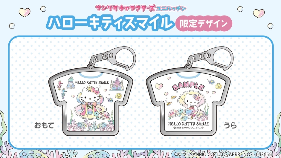 サンリオキャラクターズの人気アイテム「ユニパッチン」のHELLO KITTY SMILE限定デザインが登場!本デザインは、表面に、乙姫の衣装を着たハローキティ、裏面には人魚の衣装を着たハローキティをデザイン。バッグやポーチに簡単に取り付けられるため、日常使いはもちろん、旅の記念やお土産にもぴったりです。本商品は、HELLO KITTY SMILE1階イベントエリアにて販売中です。