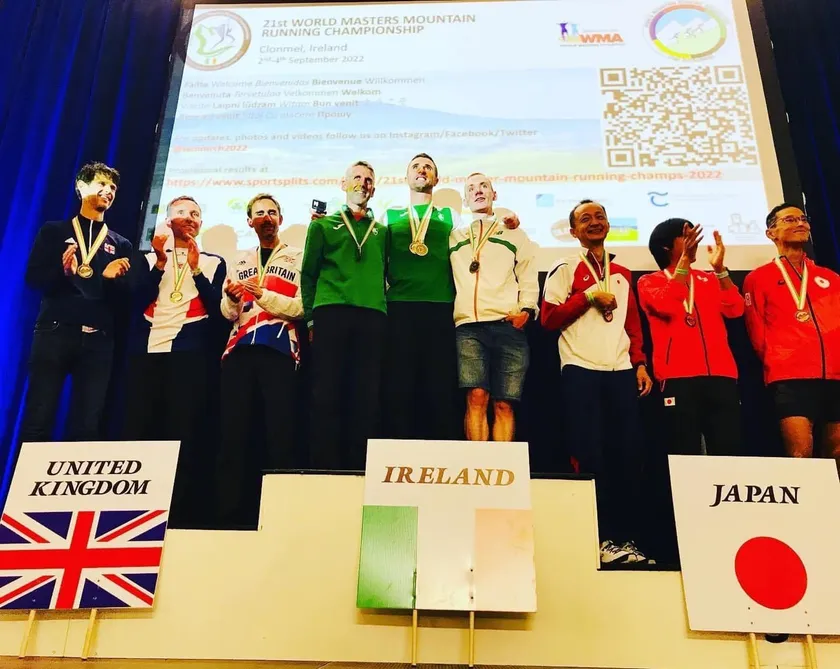 2022年9月3日(土)アイルランド、ウォーターフォード州クロンメルにて行われた「World Masters Montain Running Championship 2022」にて株式会社ウィルフォワード代表取締役の成瀬 拓也は、宮地 藤雄氏、中村 暁雄氏と共にM40カテゴリー(40-44歳)出場、日本選手団として初の銅メダルを獲得しました。