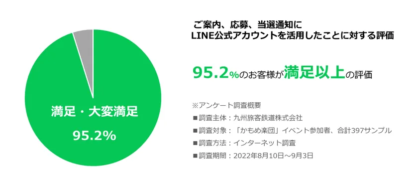 LINE Fukuoka株式会社(本社:福岡市博多区、代表取締役社長 CEO:鈴木 優輔、以下 LINE Fukuoka)は、九州旅客鉄道株式会社(本社:福岡市博多区、代表取締役社長執行役員:古宮 洋二、以下 JR九州)が2022年9月23日(金)の西九州新幹線「かもめ」開業に向け実施した「かもめ楽団」イベントにおいて、「LINEを活用したDX推進パートナー」として、LINEを活用したユーザー体験を提供しました。本取り組みの成果や利用者の声がまとまりましたのでお知らせいたします。