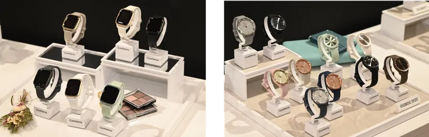 会場にはタッチ&トライエリアも設けられ、新製品「Venu Sq 2」と合わせて、機能もデザインもさまざまなGarminの充実したスマートウォッチのラインアップを体験いただきました。