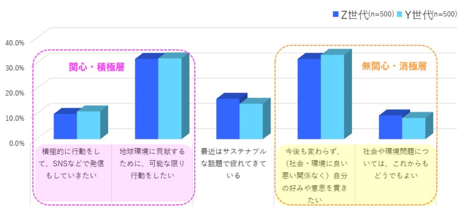 というサステナブル無関心・消極層も積極層とほぼ同レベルで存在していることもわかった。
