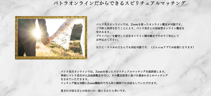 スピリチュアルマッチングページ: https://www.patrine-souls.com/book-online