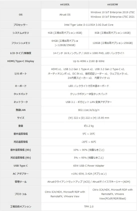 薄型軽量の14インチモバイルシンクライアント「Atrust mt183」と デスクトップシンクライアント「Atrust t185」を販売開始