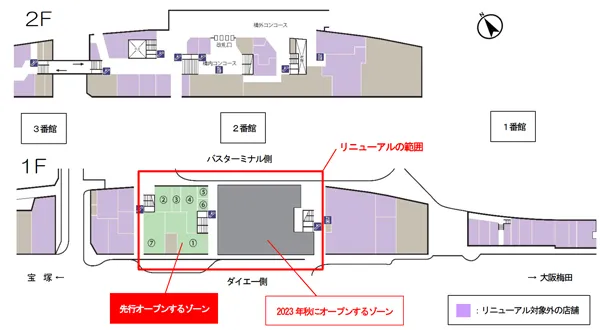 リニューアル完了後のグランドオープン日や店舗構成等の詳細につきましては、2023年夏頃に改めてお知らせする予定です。