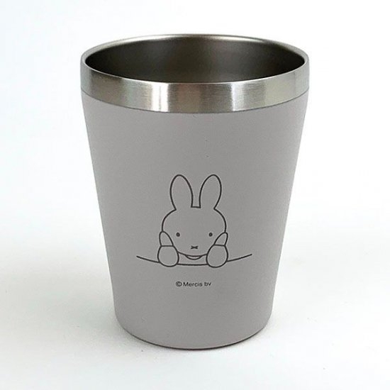 グレーのタンブラーに、シンプルに描かれたミッフィー。