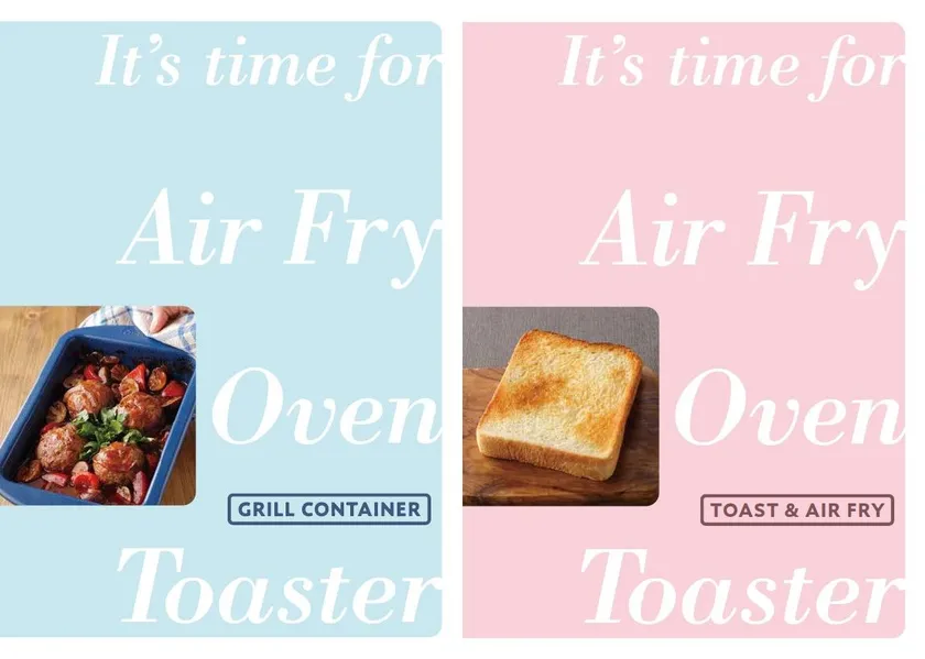 トースト、エアフライの19レシピと、グリルコンテナを使った調理18レシピを掲載したレシピブックを付属。熱風調理で揚げ物以外のレパートリーも広がります。