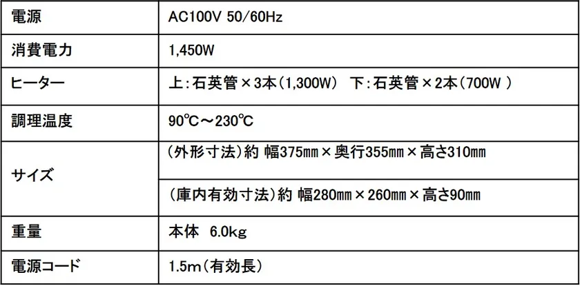 また、「トースト」「エアフライ調理」「グリル調理」「オーブン調理」等の大型ファンによるパワフルな熱風を活用した調理が最大の特長であるため「エアフライ オーブントースター」と製品名を変更しました。