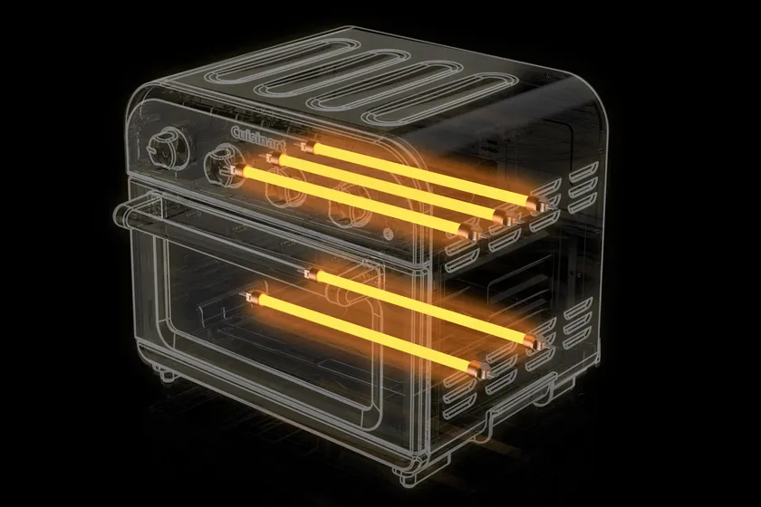 (1)石英管ヒーターを上下5本搭載、トーストを素早く焼き上げ外はカリッと中はモチモチの食感に
