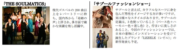 初回の開催テーマは「アフリカ」。日本ではまだ馴染みの少ないアフリカ料理の提供や、ファッションショー、民族楽器奏者によるライブ演奏やゴスペルライブなど、開催テーマに合わせて、出店者や出演者たちがさまざまなチャレンジを繰り広げます。