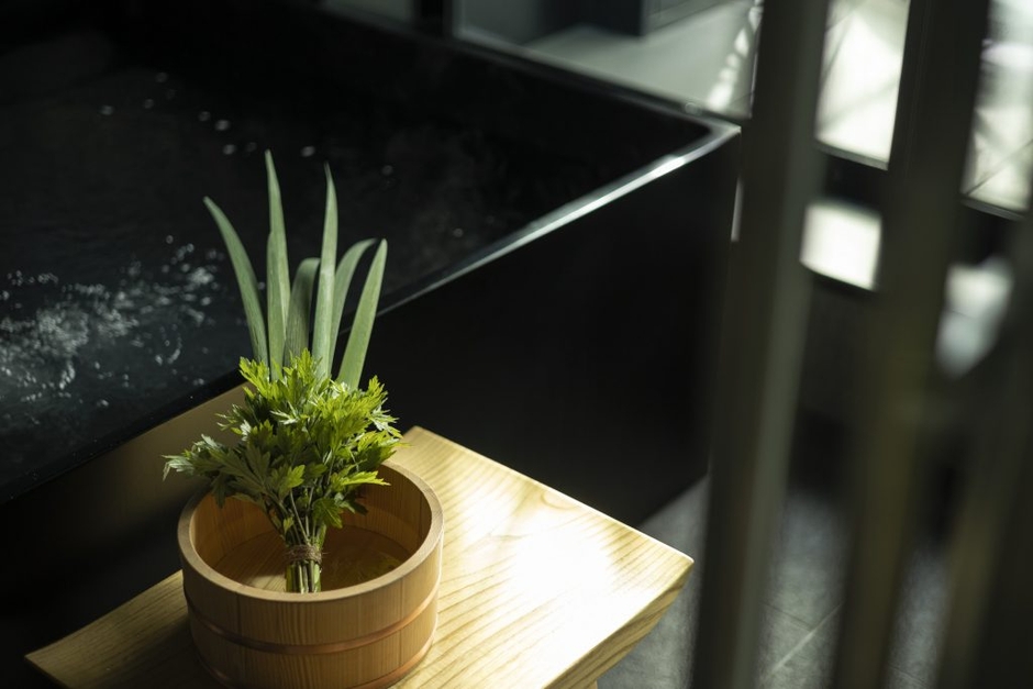 5 月 5 日は、五節句のひとつ端午の節句です。季節を愉しむために、同じ時期にあたる八十八夜にあわせて、客室には菖蒲湯を用意します。菖蒲湯は現在でも受け継がれている風習ですが、独特な芳香は邪気を払うとされます。また、菖蒲の葉や根に含まれる精油成分は血行促進などによいとされ、菖蒲湯は心身ともに効果のある薬湯です(*3、*4)。新茶体験の後に、客室のお風呂でゆっくりと過ごすことができます。