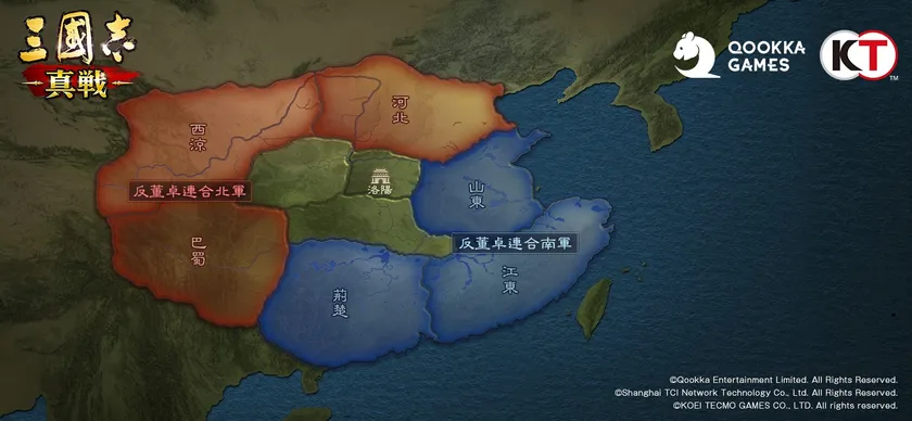 プレイヤーは6つの中から出生州を選び、連合軍に加入して董卓を討伐し、洛陽を奪還して天下統一を目指します。