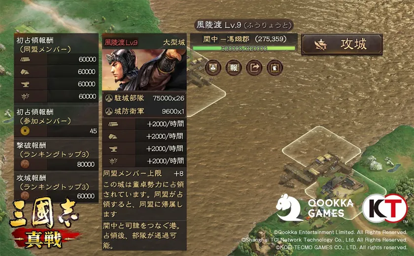TIPS:城防衛軍は土地の守備軍より強いため、序盤は一人で強攻することはお勧めできません。盟友たちと手を組んで殲滅するのが上策でしょう。
