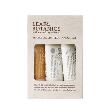 洗うことから潤すこと、さらに香りまで。植物の恵みがまっすぐに、肌に届く、心に響く「リーフ&ボタニクス」。今回の限定品には、肌を柔軟にするスウィートアーモンド油と、潤いを保つレモングラスエキスを配合しています。マザーソープとハンドクリームは定番品より保湿・柔軟成分を増やした乾燥対策処方、バスエッセンスは定番品にはない秋冬のスペシャルケアアイテムです。バスエッセンスの柔軟成分と保湿成分を含んだ乳白色のお湯が、全身にまんべんなく行きわたり、角質層に浸透します。タオルで水分をやさしく吸い取った時にわかる、肌のなめらかさを感じていただければと思います。