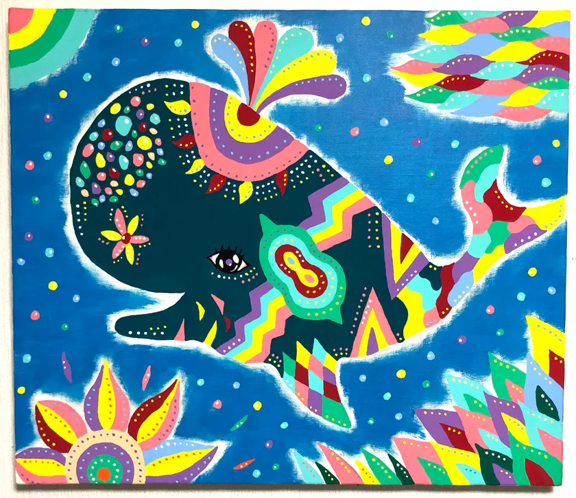 生きとし生けるものの「調和・共生」をコンセプトにクジラやゾウなど動物をモチーフにカラフルなアートを描く。
