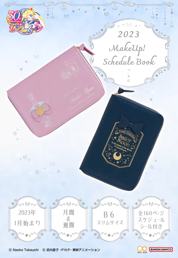サンスター文具株式会社(本社:東京都台東区、代表取締役社長:吉松 幸芳)は、『美少女戦士セーラームーン』の魅力をたっぷりと詰め込んだカバー付き『美少女戦士セーラームーン 2023年メイクアップ手帳』(全2種 各4,730円 税込/送料・手数料別途)の予約受付を、バンダイナムコグループ公式通販サイト「プレミアムバンダイ」( http://p-bandai.jp/?rt=pr )内のショップ「サンスターステーショナリーストア」にて、2022年9月9日(金)に開始いたしました。(発売元:サンスター文具株式会社)