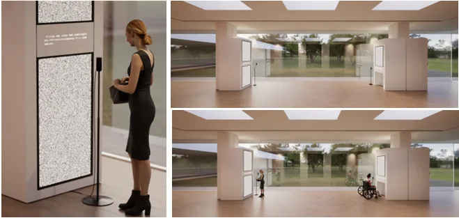 京セラは、「わかりやすい字幕表示システム」と「文章の図形化アルゴリズム」を活用した展示を通じて、来場者の皆さまが、本展を観て感じた言葉を文字化、図形化し、その言葉から映像表現を生み出すことで、アート作品を共に創る体験価値を提供いたします。