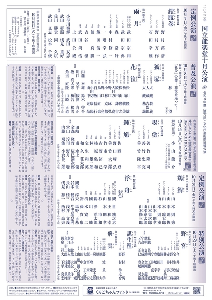 10月特別公演 野宮・謀生種・飛雲 / 2022年10月29日(土)午後1時開演