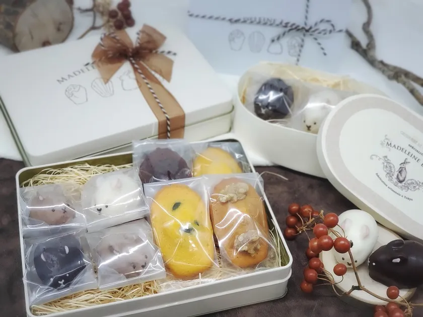 「手乗りうさぎのころっとマドレーヌ」と、ラパンの看板商品「マドレーヌ」を一度に楽しめる贅沢な詰め合わせです。「かぼちゃ」と「メープルウォルナッツ」は季節限定フレーバー。