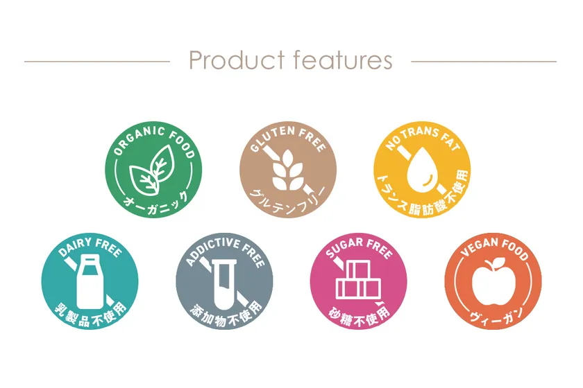 フレーバーによってヴィーガン、グルテンフリー、乳製品不使用、トランス脂肪酸不使用、砂糖不使用です。アレルギーや体質など様々な理由で食事制限のある方にも安心してお召し上がりいただけるよう選択肢を広げています。