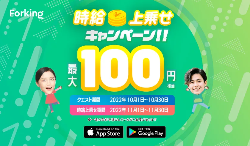 飲食店特化型の求人専門マッチングアプリ「Forking」が 2022年10月1日より時給上乗せキャンペーンを開催!