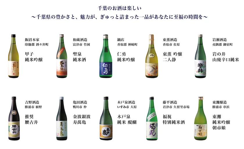 千葉県が誇る10の酒蔵よりそれぞれの代表銘柄をご用意。