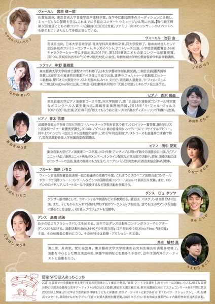私たちのコンサートやワークショップで みんなを笑顔にしてくれるのは若い優秀な芸術家たち。