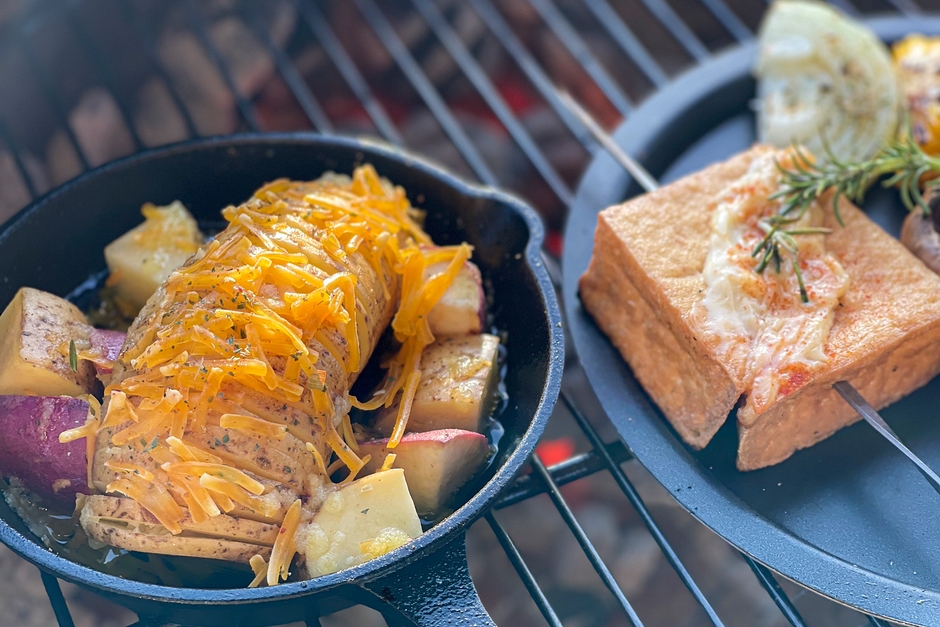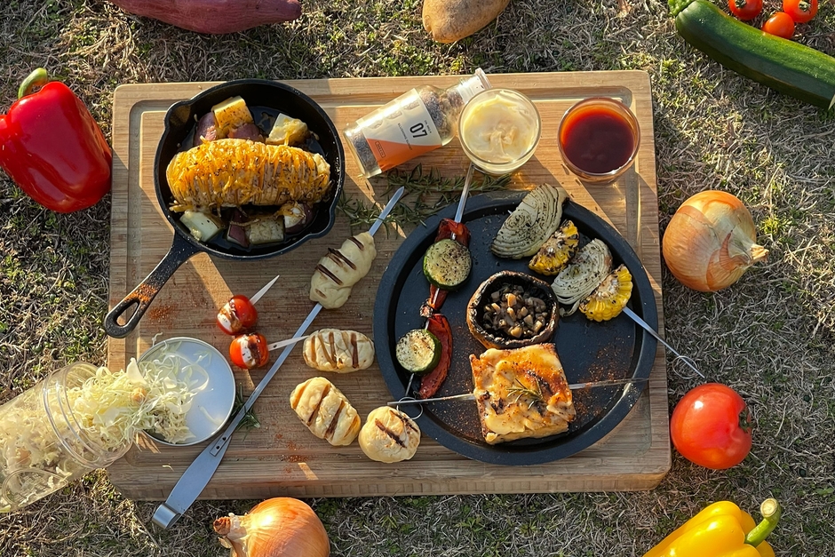 今回のヴィーガン料理はそうした点を配慮し、専用のフライパン(スキレット、ピザパン)を使って同じ網の上で調理するスタイルを取り入れることで、みんなが一緒に輪になってBBQを楽しむことができます。